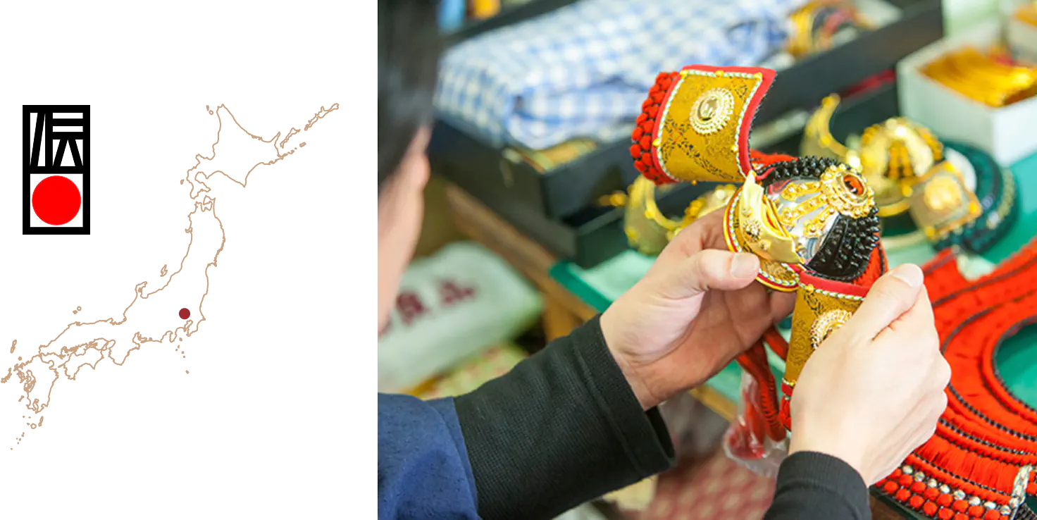大越忠保が受け継ぐ日本の江戸甲冑は、金細工・木工品・京織物・組紐・皮革工芸といった日本全国ある伝統工芸の技術が集約したもので、約5000という工程に100人以上の職人が携わり完成する日本が世界に誇れる伝統工芸品である。